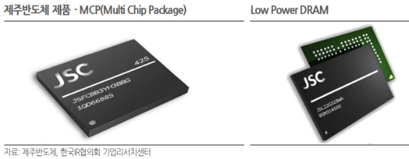 - 제주반도체의 주요 사업 부분은 크게 모바일 및 IoT 기기에 사용되는 메모리 반도체 솔루션 제공으로 나눌 수 있다. 핵심 제품군은 MCP(Multi Chip Package), NAND MCP, eMCP, NOR MCP 등 다양한 유형의 복합 메모리 제품군이다. 이들 제품은 여러 종류의 반도체 칩을 하나의 패키지로 통합하여 공간 효율성을 높이고 전력 소모를 줄이는 특징이 있다. 이러한 MCP 제품들은 스마트폰, 태블릿, 웨어러블 기기 등 소형 모바일 기기에 필수적으로 사용된다.